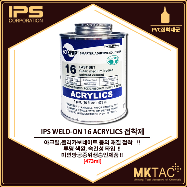[IPS] WeldOn Acrylics 16 웰드온 아크릴/PC/플라스틱 접착제 (473ml)