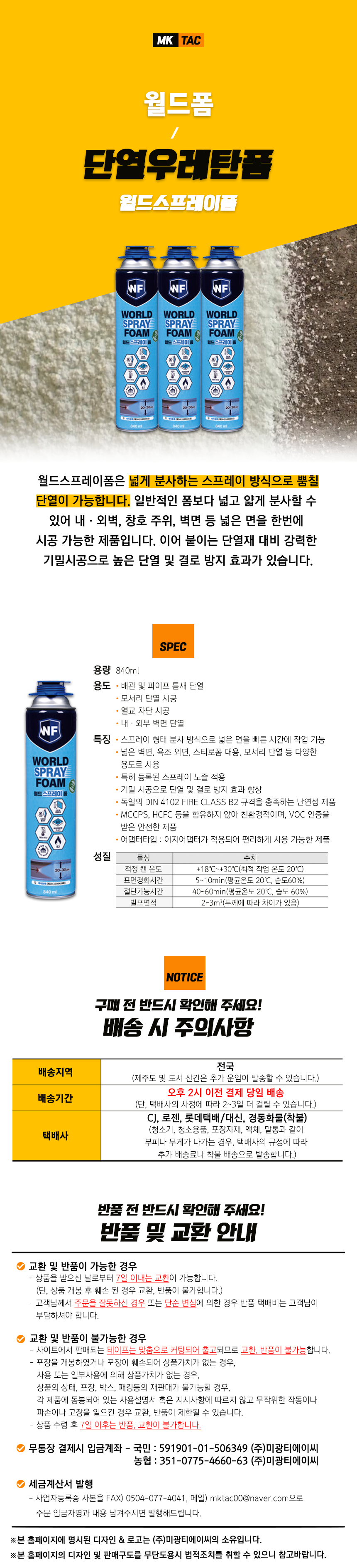 [WORLDFOAM] 월드폼 단열우레탄폼 월드스프레이폼