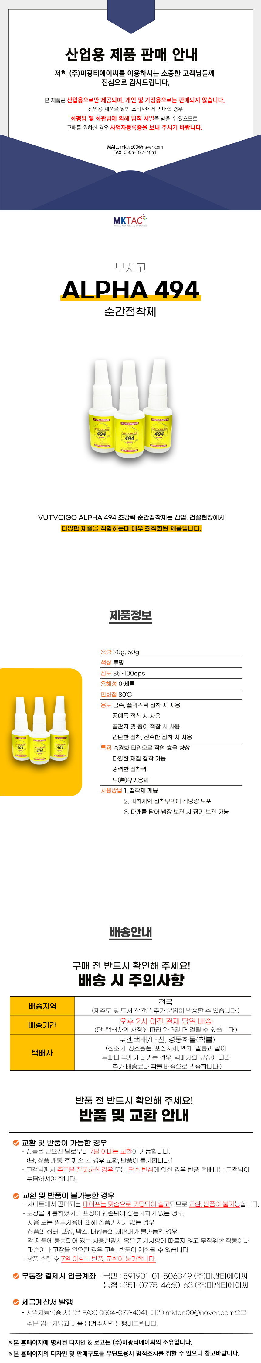 ALPHA494/알파494 다용도 초강력 순간접착제 (중점도,다목적용) (용량 : 20g) 가사시간:1초~5초