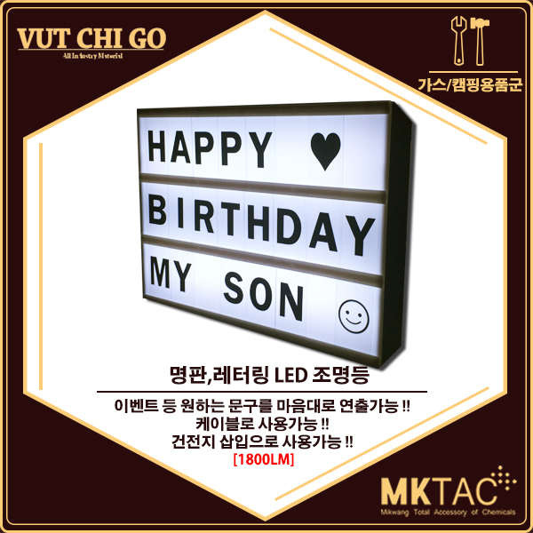 home > ◈ 산업/일반용자재 > 가스기기/캠핑용품 > [MKTAC] 명판,메시지,레터링 글씨/메시지 LED 조명등 (1800LM)