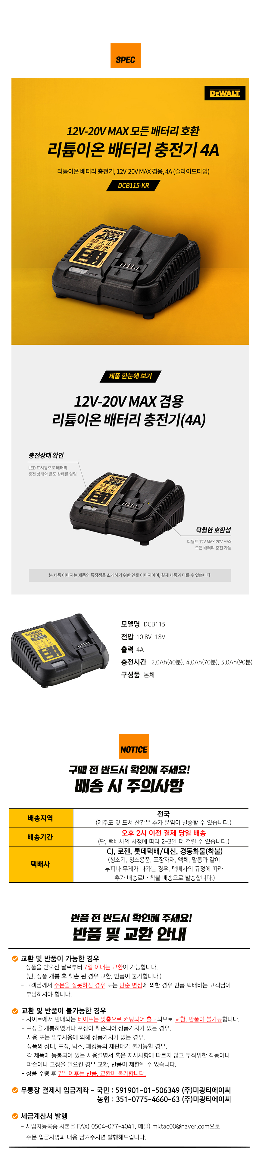 [DEWALT] 디월트 리튬이온 배터리 충전기 DCB115