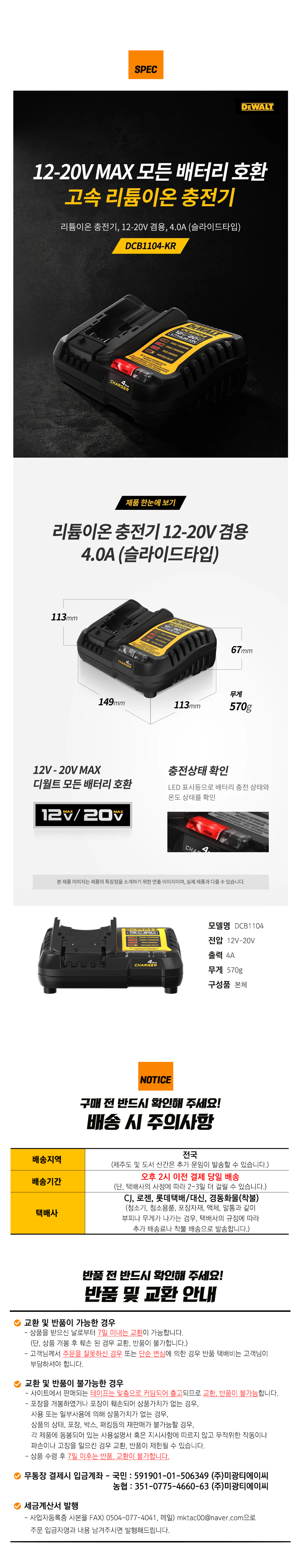 [DEWALT] 디월트 리튬이온 배터리 충전기 DCB1104