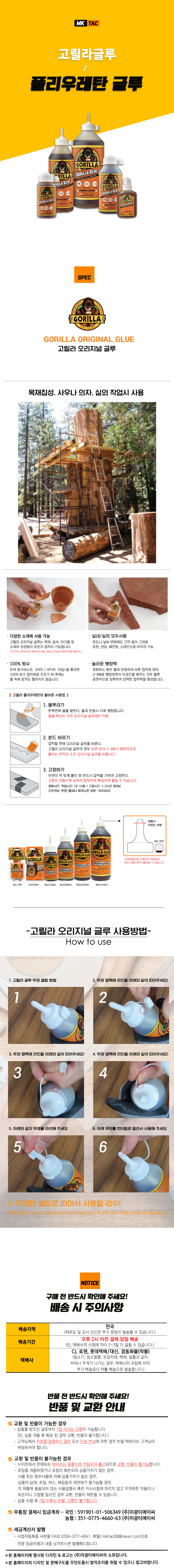 home > ◈ 접착제 [Adhesive] > 일반,특수용 접착제 > 다용도 접착제 > [GORILLAGLUE] 고릴라글루 폴리우레탄 글루(2oz/59ml)
